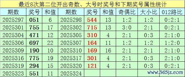 前7依次二位号码开迥殊数、大号时奖号远离为:051、755、471、697、190、775、294,其中奇偶总比例为15:6,有2期奇偶比与上期奇偶比相同;号码大小总比例为13:8,每期奖号大小比与上期奖号大小比齐不相同;
